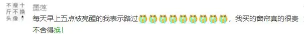 @墨莲:每天早上5点被亮醒.....买的窗帘真的很贵,不舍得换!