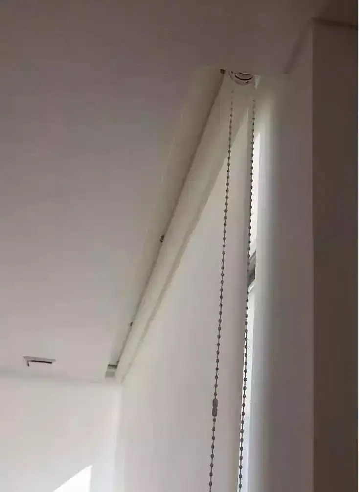 而且比起左右拉的窗帘,收起来会有褶皱,上下开的窗帘占用窗户上方一点的空间,对采光友好。