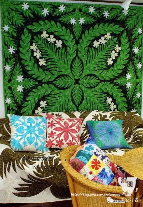 夏威夷拼布总是给人一种张扬、热烈的视觉冲击力,风格很像我国的剪纸艺术。