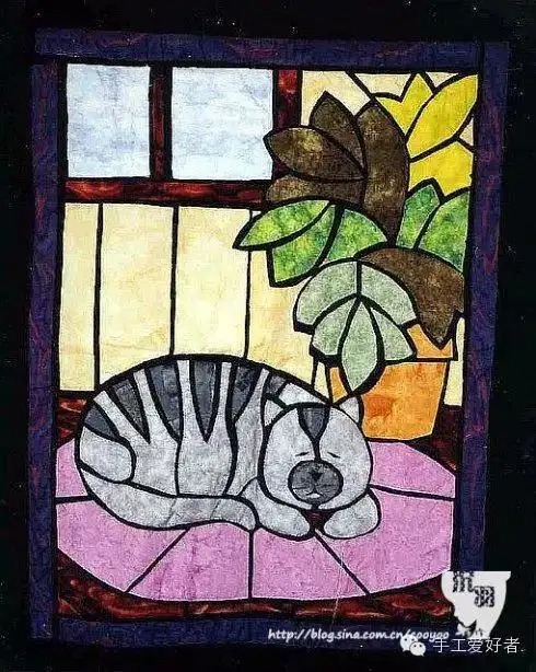 彩绘玻璃拼布(Stained Glass Quilt)顾名思义就是风格类似于真正的彩绘玻璃窗。