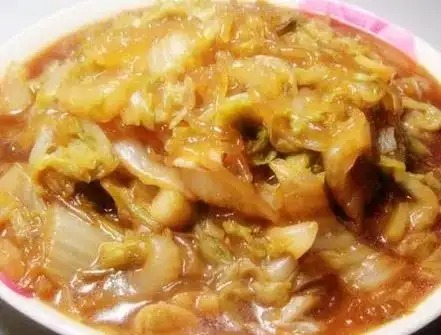 9、然后加入适量清水稍微煮一下,至白菜入味即可