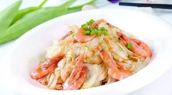 5、用锅里留用的虾油,倒入大白菜茎翻炒至变软后