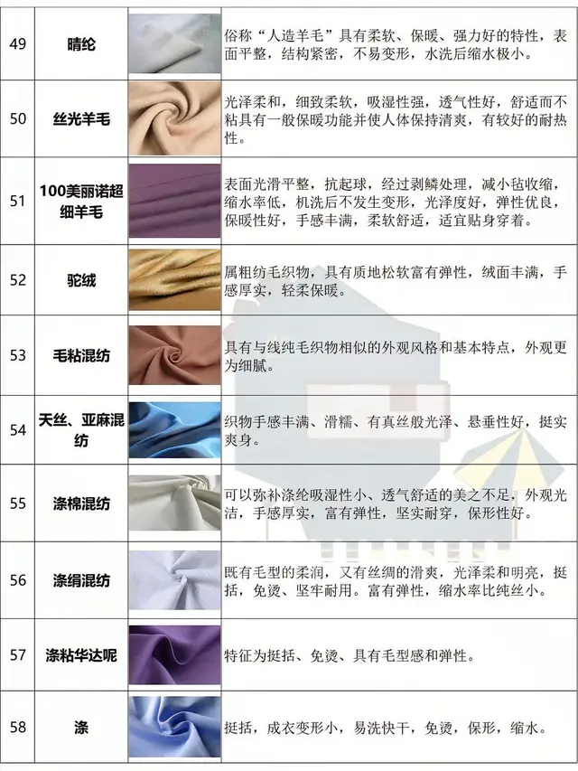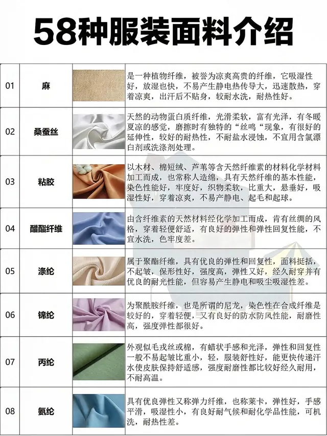 58种服装面料,犹如五彩斑斓的织锦,编织着时尚与舒适的双重梦想。这些面料不仅涵盖了传统与现代的精髓,更融入了科技与艺术的巧妙结合,展现了服装领域的无限创意与可能。