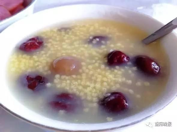 早餐:养生粥(大米、小米、红枣、桂圆)、西红柿、带壳煮鸡蛋
