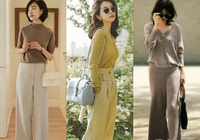 阔腿裤是日系穿搭里面很重要的组成部分。白色的阔腿裤和咖啡色的棕色上衣,这样大面积的色系穿搭是日系常见的,这样搭配温柔可人,有种温柔姐姐的范儿。春天的嫩绿色的针织上衣搭配同色系的阔腿裤,来个有点设计感的蓝色剑桥包,和春天完美地融为一体。灰色的针织衫和灰色的阔腿裤,搭配起来好看优雅!