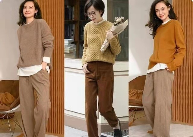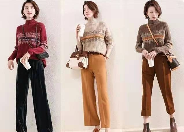 日本的漫画里面,很多少女都喜欢穿这种有点圣诞气息的针织衫。红色的针织衫搭配黑色的加绒直筒裤,有种温暖的春日感觉,搭配一个流浪包,出街范儿就很足够了。米色的针织上衣搭配杏黄色的阔腿裤,来个手拎包,上班族的感觉快来提神干活啦!咖啡色的针织衫和棕色的裤装,水桶包和小靴子的搭配,让约会也轻松起来。