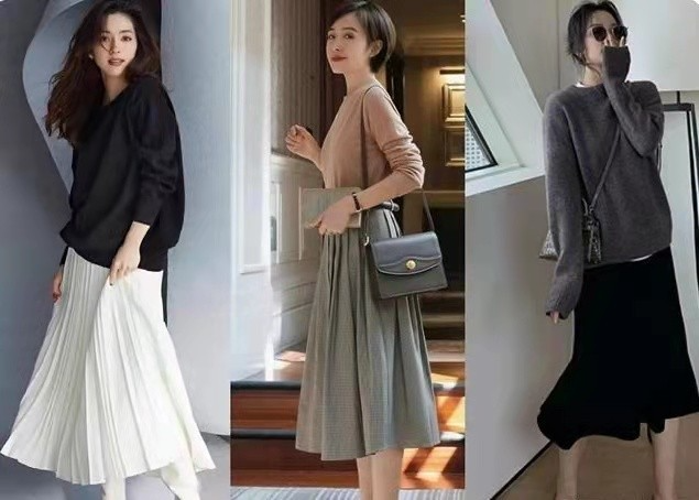 日系的穿搭里面,裙子也是一个不可或缺的元素。白色的伞裙褶皱感很强,搭配黑色的宽松卫衣,整体的流线感和设计感就很强了,日本艺术馆里面这样的艺术家背影就很吸引人。日系的通勤穿搭里面也有这样的伞裙,灰色的伞裙搭配藕色的上衣,小挎包和小书一拿,妥妥的东京白领。黑色的小裙裙和灰色的针织上衣搭配,让整体的感觉休闲了哦!