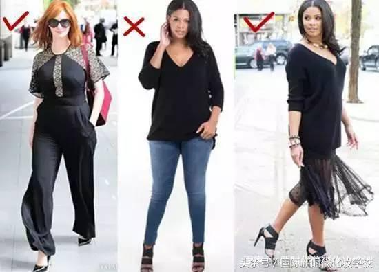 正确方式:选V领或者选个大圆领,一定要把脖子露出来,塑造V型。