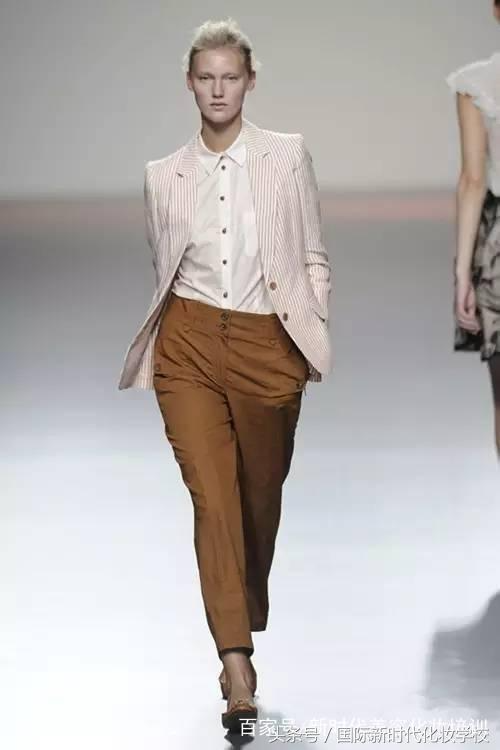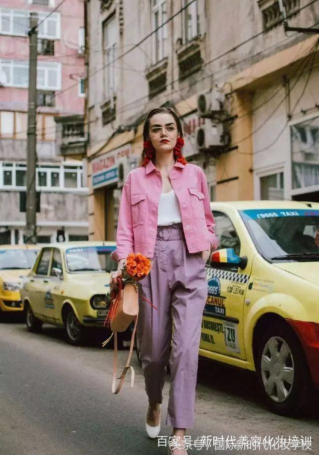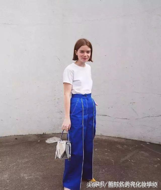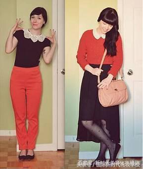 同样是高腰连体裤,黑色显瘦,白色显胖,这是因为暗色调比亮色调看起来显瘦。可以利用色彩的视觉效应,通过衣服颜色来调整身材比例。