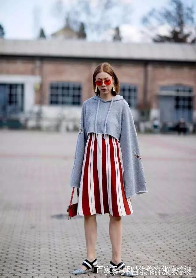 第三是,最好选择裙摆不要太宽的,介乎于直筒和A字型之间的版型,竖条纹的设计加上Crop top搭配,显高显瘦效果更是加倍。