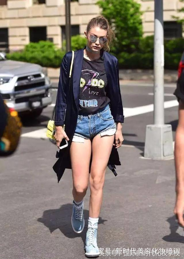 中长款T恤是调整上半身比例的绝佳单品。可以选择长及大腿根部的oversized长T恤,打造衣服一下都是腿,不仅突出双腿,更让人忽视上半身部分。其中黑色最显瘦,你懂的。