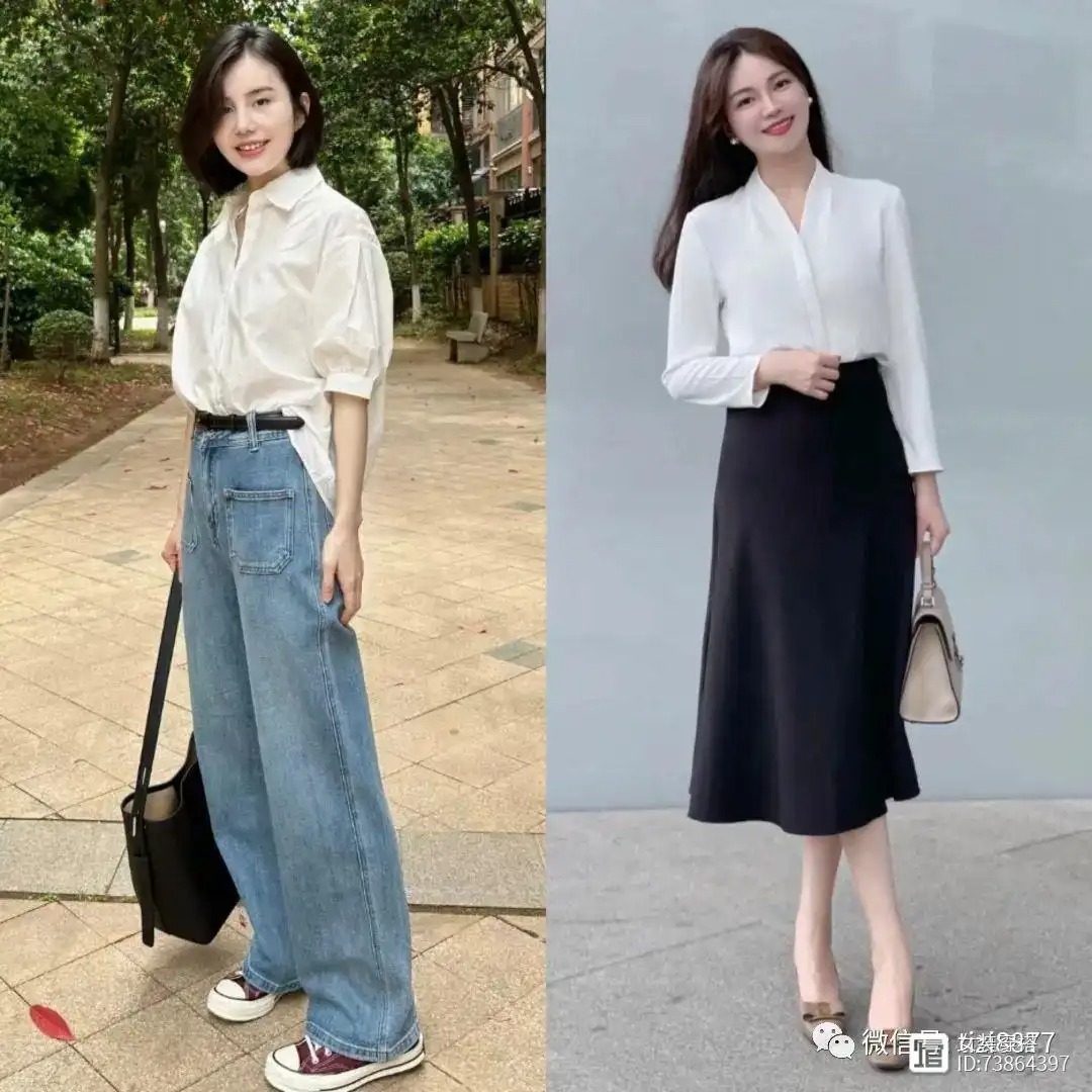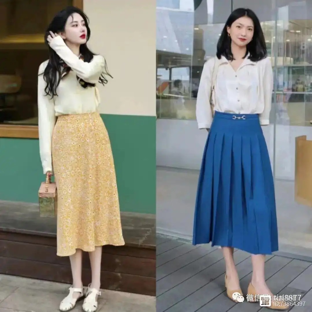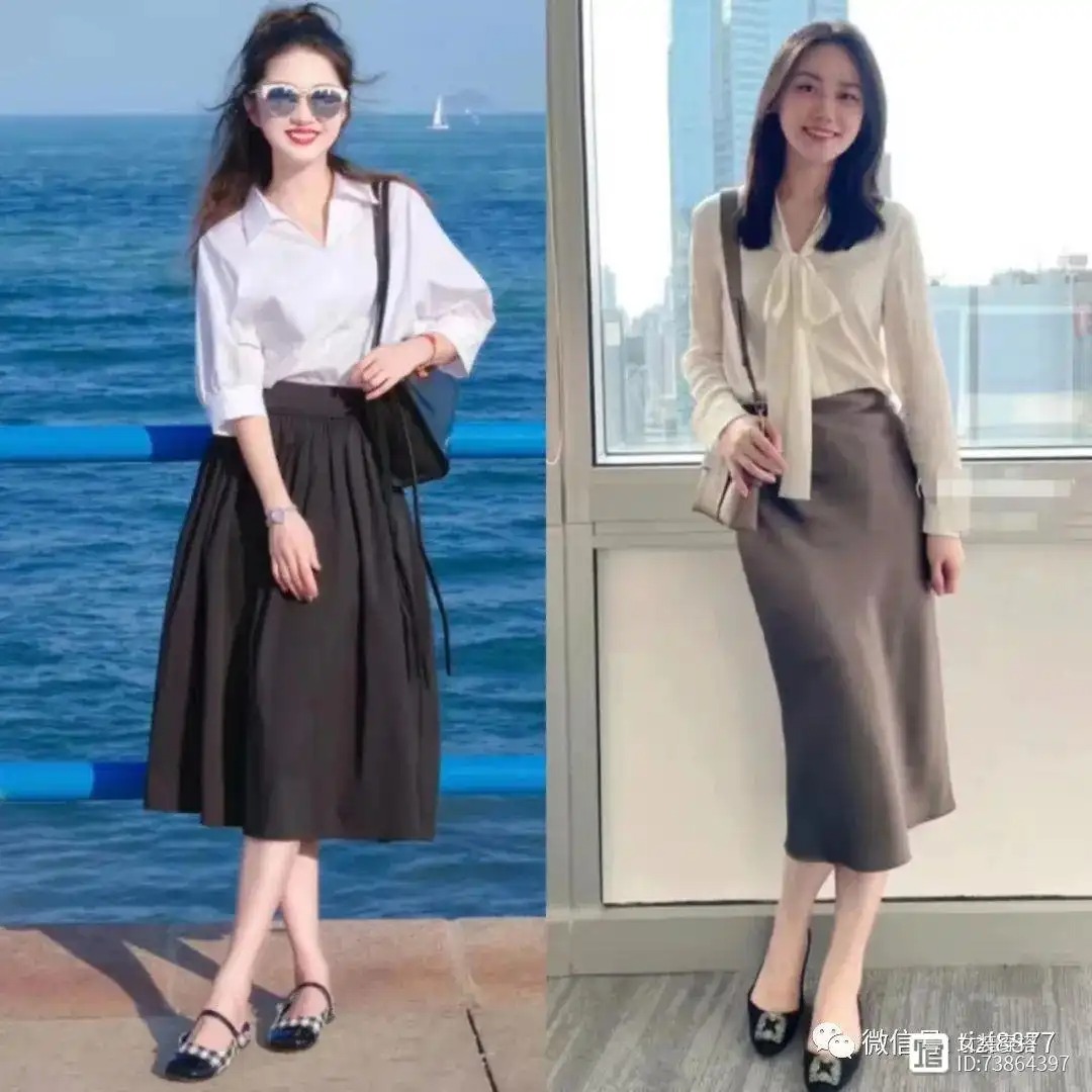 衬衫和半身裙的搭配,既可以清新优美,也可以穿着简约高级,无论是在上班还是日常,都是不错的选择。