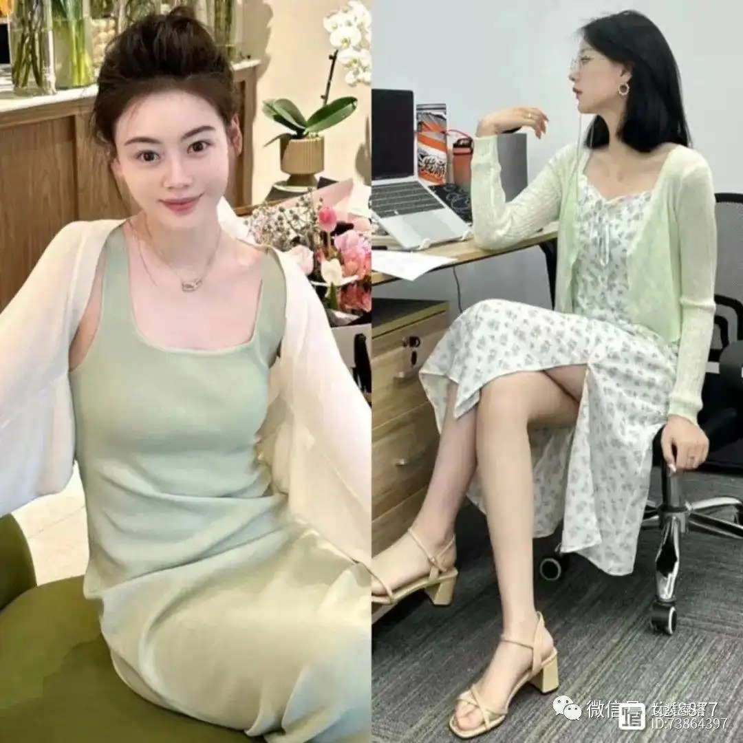 针织衫+连衣裙搭配方式,不仅可以遮盖肩部肉肉,还可以为整体造型增添一份优雅与温婉,非常适合身为微胖或身上有肉的姐妹。
