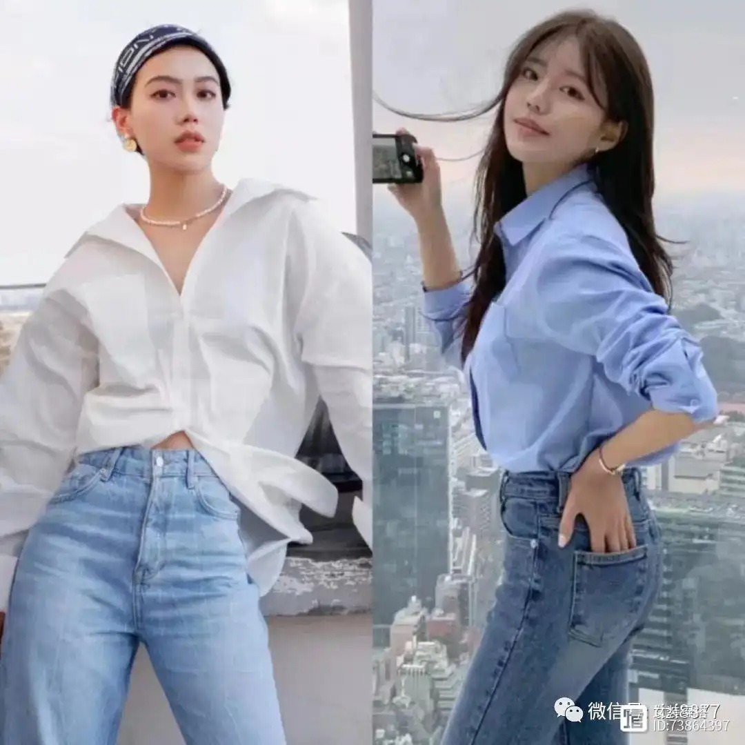 衬衫的款式也要考虑:如果牛仔裤是紧身的,那么最好选择宽松一些的衬衫,这样可以让整个造型更加舒适自然。