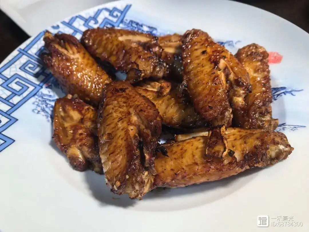 晚上回到家,一进门就闻到一股极其好闻的蒜香混合着一种焦香的味道,沁人心脾,原来是小伙子在空气炸锅里烤了鸡翅,用生抽老抽料酒盐姜片腌过,放上蒜片和柠檬一起烤,色香味俱全,看着就好吃,给小伙子点个赞!