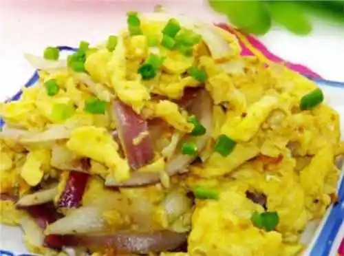 【洋葱炒鸡蛋】做法:1.洋葱切细条,鸡蛋磕进碗里,滴几滴酒进去,加盐搅打均匀;2.热油锅,倒进洋葱煸炒至出香味;3.把洋葱拔到一边,倒入鸡蛋液;4.翻炒至蛋液全部凝固;5.加入适量生抽,翻炒均匀即可;6装碟,撒点葱花更香。