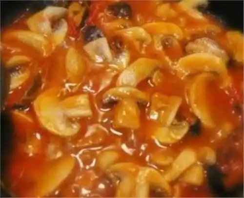 【茄汁蘑菇】原料:蘑菇、番茄酱、白醋、糖、酱油、薄芡汁、鸡精;做法:1.锅中热少量油,加入两大勺番茄酱,小火翻炒,加入白醋,糖,适量水,一点点酱油,勾入薄芡汁,不断翻炒;2.倒入炸好的蘑菇,翻炒均匀,至汤汁浓稠时加入鸡精,香油,出锅。