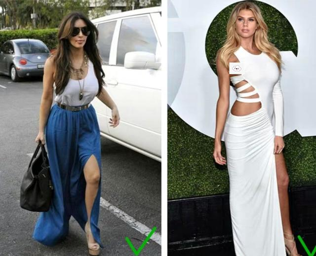 除此之外还可以选择一些不对称的设计,比如说不对称的裙装。或者是撞色的设计,这样可以帮助联系妹子,更好的突出自己身体上的优点。淡化自己上身比较胖宽大腿粗的缺点,除了我们上面介绍的这几种方式之外。还有一种就是要模糊跨步的边界