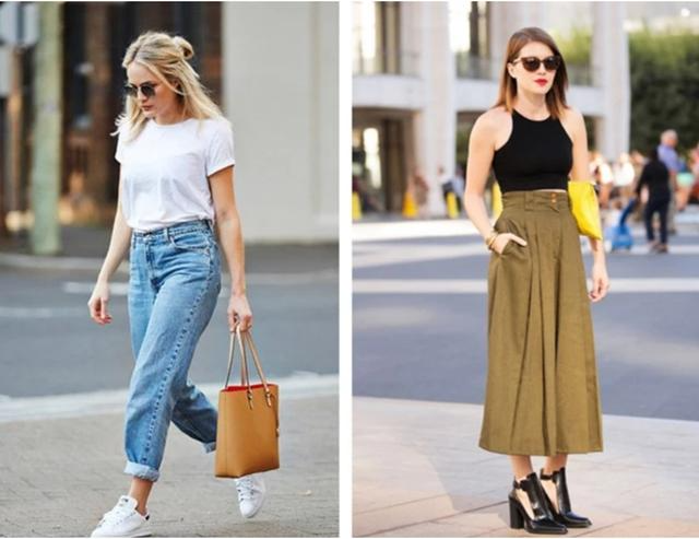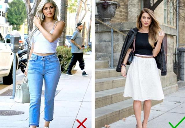 在选择单品的时候,小仙女们要记住一条,高腰的裙装会比高腰的裤装有更好的提升效果,因为梨形身材下半身比较胖,裤装虽然也有提升效果,但是横向的拉长视线导致这样的效果变得没有那么明显,因此我们可以选用高腰的裙装。A字形的裙装可以完美的遮住粗壮的腿部,同时还能有效的拉长线条,所以效果要比裤装好上许多