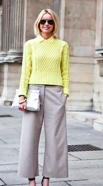 当然对于喜欢裤装的小仙女来说,可以选择高腰的阔腿裤,高腰的阔腿裤不要选择设计过于宽松,像裙裤那样的款式,比我们正常的裤子宽松,但是,比阔腿裤要稍微瘦一点的款式,垂坠面料很好,才能达到我们想要的效果