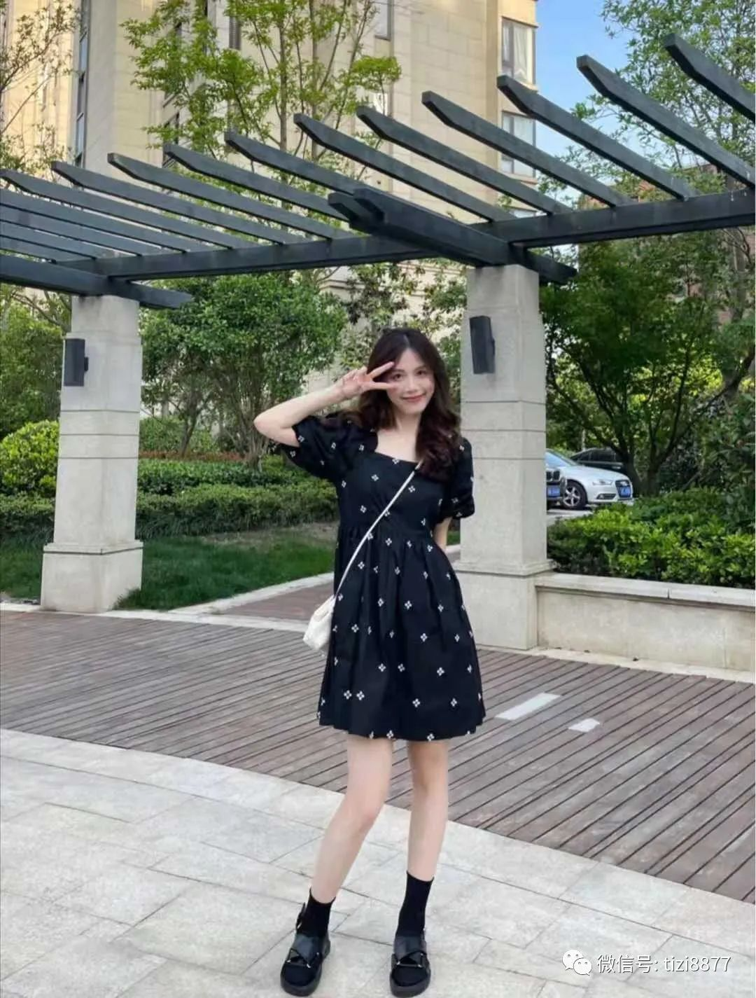 精致小黑裙穿搭:夏天一条百搭又上镜的小黑裙很有必要,泡泡袖带点公主风,A字的版型修饰身材又显瘦,今年这个白色印花还是挺火的,简约又不单调,脚上穿了黑色的袜子和皮鞋统一色系,姐妹们快点来get同款吧。