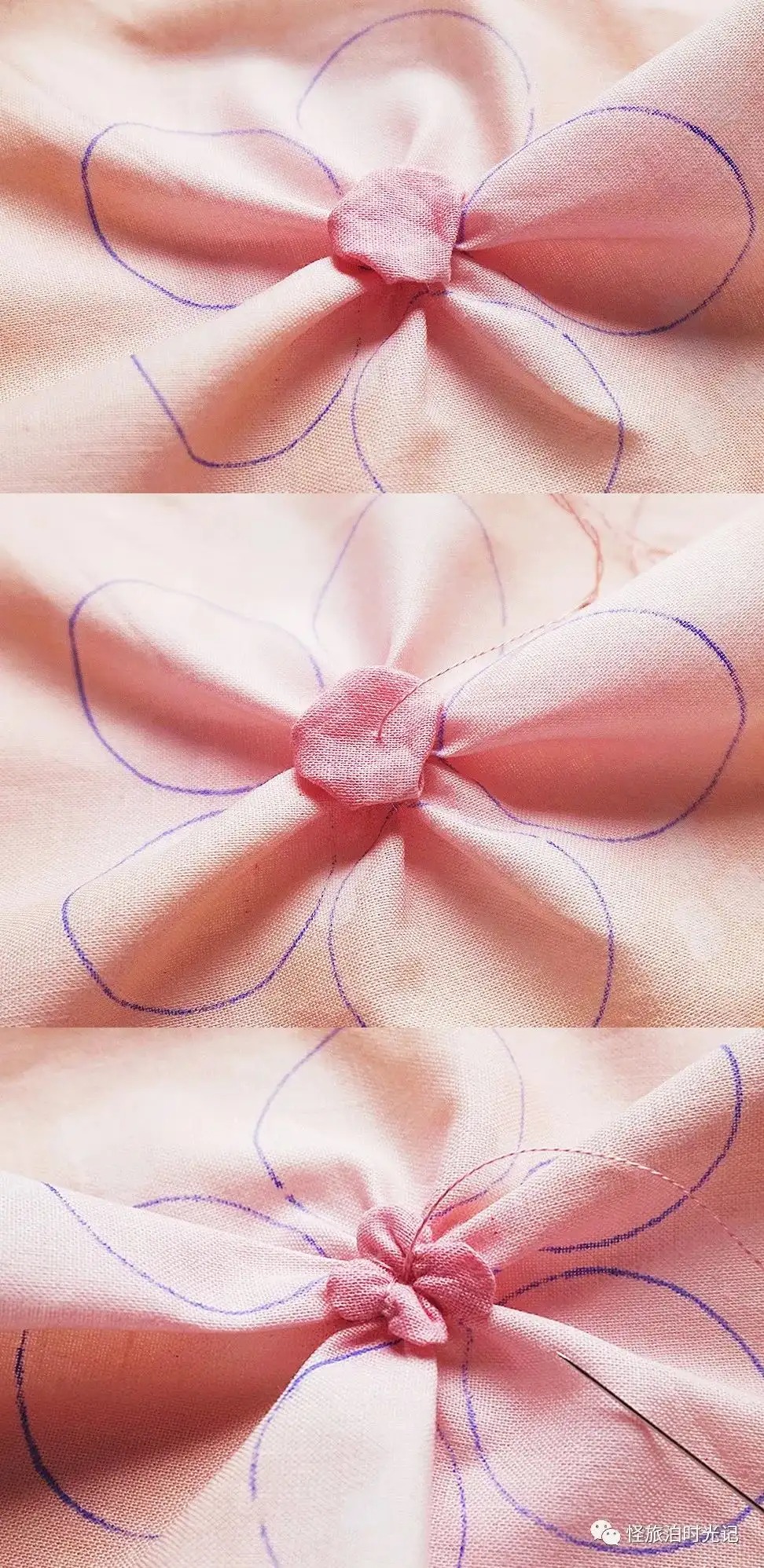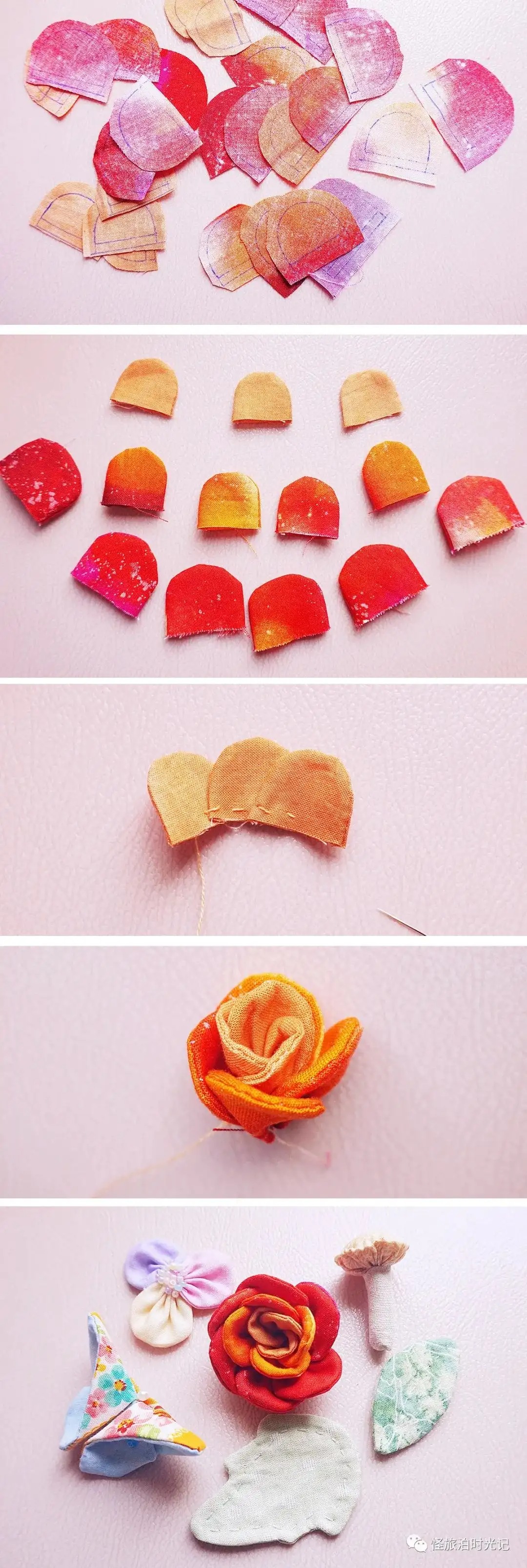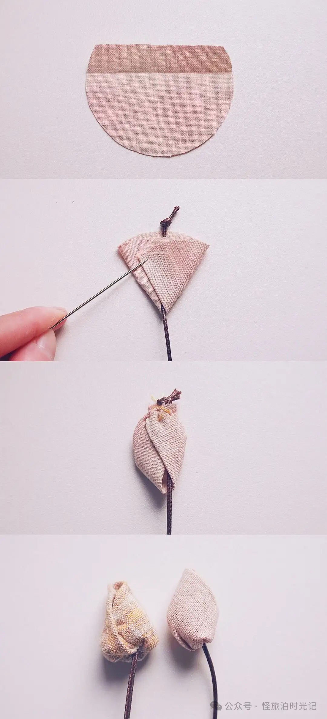 当你作为新手,准备拿起针线忙活时,出于学习的需要,一定会观看各种他人的教程,赶紧收藏起来备用。那时喜欢看的,就是此刻要发的内容:各种简单易学的布艺制作。在新手小白时期,我对手艺没有一点信心,甚至不知道怎么开始。从简单的开始做,慢慢积累了一些经验,信心便逐渐增长起来。如果你跟我一样自学,也常看别人发布的内容,有没有感觉到。很多图文教程经过无数次的转载,像素很低,模糊不清。偶尔我会突然忘记某些小物的制作,赶紧打开文件夹里,找出自己的教程看看,很方便。接下来我分享一些如何用布料制作花朵、蔬菜水果等小物的教程。都不止一个做法,稍微改一下,按自己顺手的方法做就有新的创意。针线在超市就能买到,那种一个盒子,配有好几个线轴、一包针还有顶针、穿线器。如果松一点,再拉线,就能抽紧布料,上面的制作都有用到。关于做手工的布料,当然可以用不要的旧衣服,废物利用嘛。柔软的棉布之类的就不错。雪纺则太轻飘飘了,有的人能做,我不太行。最开始不知道选什么布料,我的经验是买布组,即不同颜色不同印花搭配的一套,是店家配好的。做久了后,你可能会形成自己的偏好。喜欢某几个颜色搭配,或者某一类别布料,单独买它。总之,坚持下去,新手小白很快就能成为什么都会做的“老人”了(˵¯͒〰¯͒˵)