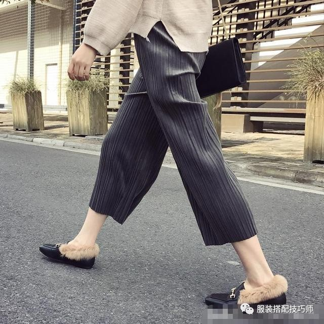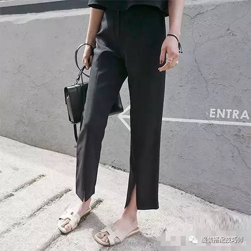 穿衣技巧:阔腿裤很适合梨形身材的美眉,即便你的身材娇小也能完美驾驭,让你的宽胯和粗腿完美的隐藏在阔腿裤中!偶尔来点个性也是蛮不错的,裤腿开叉的阔腿裤+造型独特的凉拖,分分钟让你成为人群中的亮点!