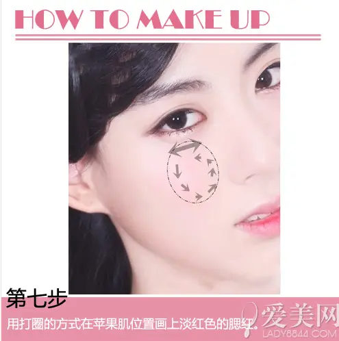 打圈的画法让整个妆容有一种可爱感,在白皙底妆上的淡淡粉红更加招人怜爱。