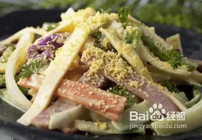 用料:玉米、鳄梨、黑豆、洋葱、莴苣、橙汁、芫荽。鳄梨和洋葱切碎,加入黑豆、玉米、莴苣混合,加入番茄、新鲜的橙汁和芫荽叶搅拌。