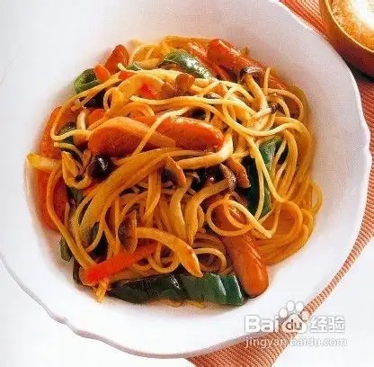 用料:意大利面条、大蒜、蘑菇、羊奶乳酪。洋葱、大蒜切碎,再炒蘑菇,再把蘑菇切成小片、炒意大利面,加入西红柿,最后倒入羊奶乳酪。