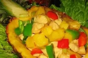菠萝炒鸡胸肉。