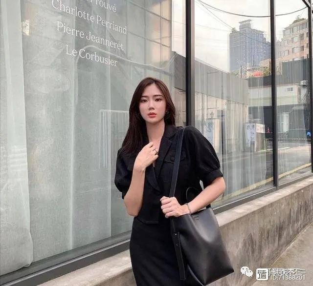 一件简约的黑色宫廷风长裙不失淑女的端庄气质,又不会显得呆滞死板。V领的设计给整个造型带来了灵动的气息,显得少女感十足,半袖的设计能够遮住部分手臂的线条,这样的设计对于手臂上有赘肉的女孩来说也不用担心,黑色的长裙非常的显瘦,藏肉效果满分。