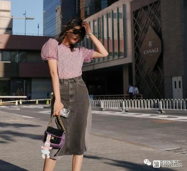 一件浅紫色印花泡泡袖雪纺上衣,搭配深色牛仔半身裙,将魅惑的紫色和稳重的深灰色搭配在一起,完美的中和了两种不同的气质,混搭出曼妙多姿的女人味,泡泡袖的设计是今年大火的流行元素,能够修饰肩膀的线条,又不会显得臃肿,看上去更有气场。