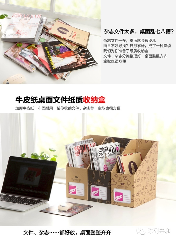 如果有正在用、实在懒得收起来的书本,堆在桌上又乱糟糟不好拿取,推荐桌上小书架,善用书立、文件盒等工具。