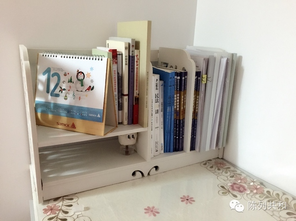 然后把书桌右手边的“书书书全是书”移到矮柜里,坐在书桌旁的椅子上也能随手拿到,不会影响学习效率。