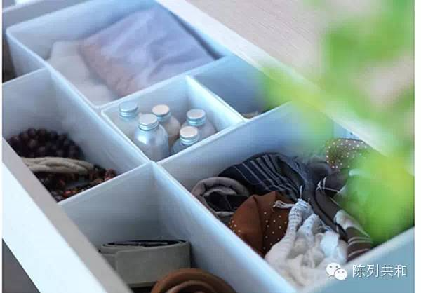 放入大大小小的盒子、格子,分隔使用。
