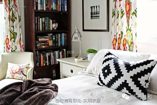 原来放“书书书全是书”的收纳柜用来放打印机,把床头柜台面空出来,最多放盏台灯,毕竟你睡觉的时候可能需要放手机、放本书、放眼镜、放手表、放空调遥控板等等,没有床头柜台面会很不方便,往别处放又会很乱。