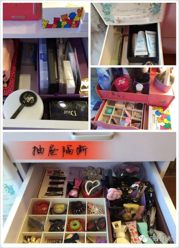 其实只要使用抽屉分隔,这个问题就迎刃而解,一目了然,好拿好取,用完放回去也很容易做到哟!