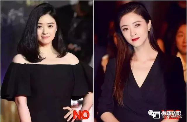 其实矮胖姑娘的肩并不是真正意义上的宽肩,而是由于身高局限了视觉效果,让肩部看起来比较宽而已。就拿娱乐圈里一直被称为微胖典范的蒋欣,穿一字肩真的有种虎背熊腰的感觉,而对比起穿深V领的款就会显得从脖颈到身型都纤细很多。