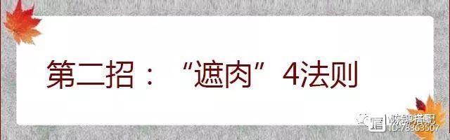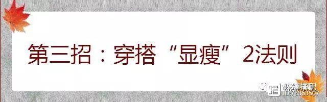 前面两点分别讲到“露”和“遮”,接下来的第3招自然就是“穿”了。取长补短的穿搭技巧。我们将她分成2大法则,分别是我们色彩搭配显瘦和黄金比例显瘦。通过这一系列的细分小技巧,结合实践而学以致用,提升穿搭显瘦的小技巧更能快速奏效。