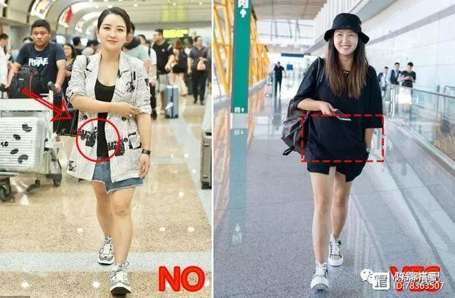 水桶腰可谓是矮胖姑娘的一大特色了,明明身高就不够,这水桶腰也要来凑凑热闹。所以要显瘦水桶腰“遮肉”也是必不可少。就拿由于刚生完孩子身体还未完全恢复的何洁,从这张图看就算是外面还穿了衬衫,可里面紧身的吊带衫还是没能将小肚腩给隐藏。而反观旁边黑色的休闲裤装,水桶腰一遮无疑,很显瘦。