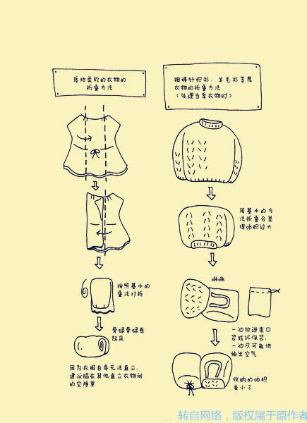 【旅行必备的各种衣服的折叠收纳方法】教你如何整理不同的衣物,字有点小,按照图示操作吧,分享给驴友们有时候整理出门行李时一定用得到…