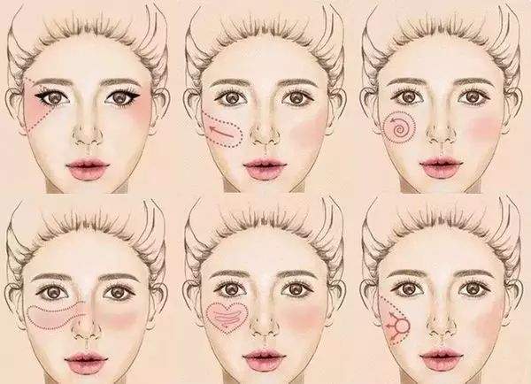 腮红的涂抹位置和手法都有所区别