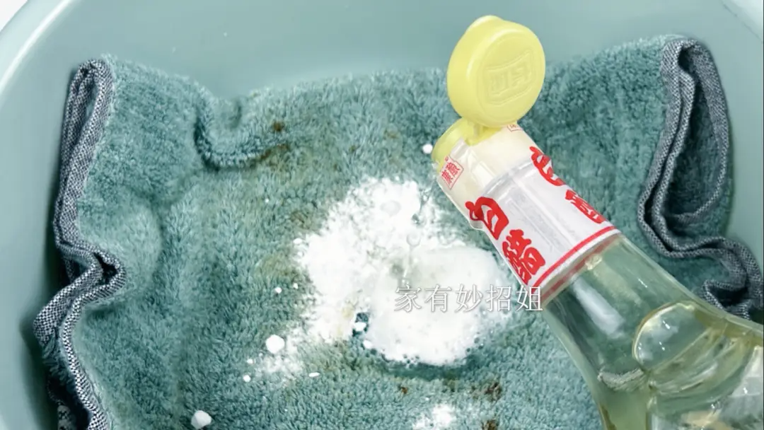 接着,我们还需要准备一点白醋和洗洁精倒在里面。白醋具有软化的作用,它可以渗透到毛巾纤维中,帮助软化,使毛巾恢复柔软,而且白醋中的醋酸还可以去异味,将毛巾上产生的一些异味给中和掉。洗洁精的话,它有着很强的去油功效,就可以将毛巾上残留的油脂之类的给去除。