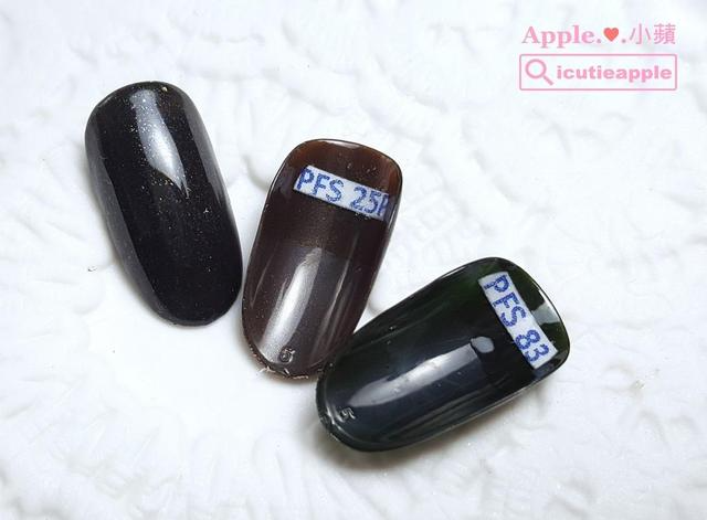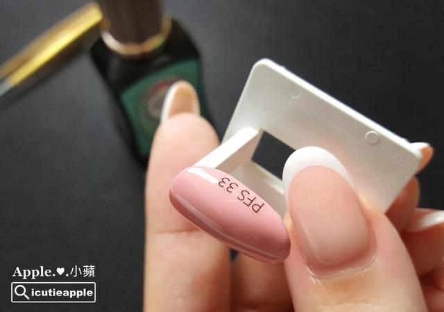 ▲这张色卡的色号标签,小苹命名为「PFS 33」。小苹手边的彩胶品牌很多,标签编号「PFS」开头,是小苹自己为大森Puffs Gel泡芙罐装彩胶所命名的缩写代称,主要是方便小苹自己辨识,数字「33」则是彩胶色号,所以「PFS 33」就是指大森Puffs Gel泡芙罐装彩胶#33。大家可依照自己的方式决定标签内容,只要方便且容易辨识就好,但不建议过于复杂,不然可能连自己都会搞混,这样就失去编号的目的了。