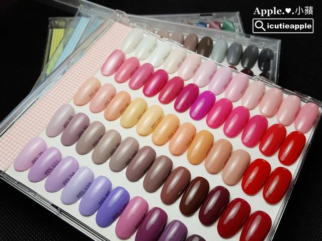 ▲色卡的显色度与亮度,对于客人或是自己在挑选用色上,真的非常重要,目前我手边的色卡,全部都是使用大森钻石免除胶上层来封层,就免除上层来说,她真的很亮、很晶透,是我爱用好久的免除上层。这颗大森Puffs Gel泡芙罐装彩胶#33,小苹真的很喜欢,如果大家对Puffs Gel泡芙彩胶有兴趣,想了解使用心得,可以参考小苹这篇文章→ 【美甲彩绘】浪漫印象派玫瑰与春天花儿的邂逅❤大森美甲Puffs Gel泡芙彩胶精选30色开箱