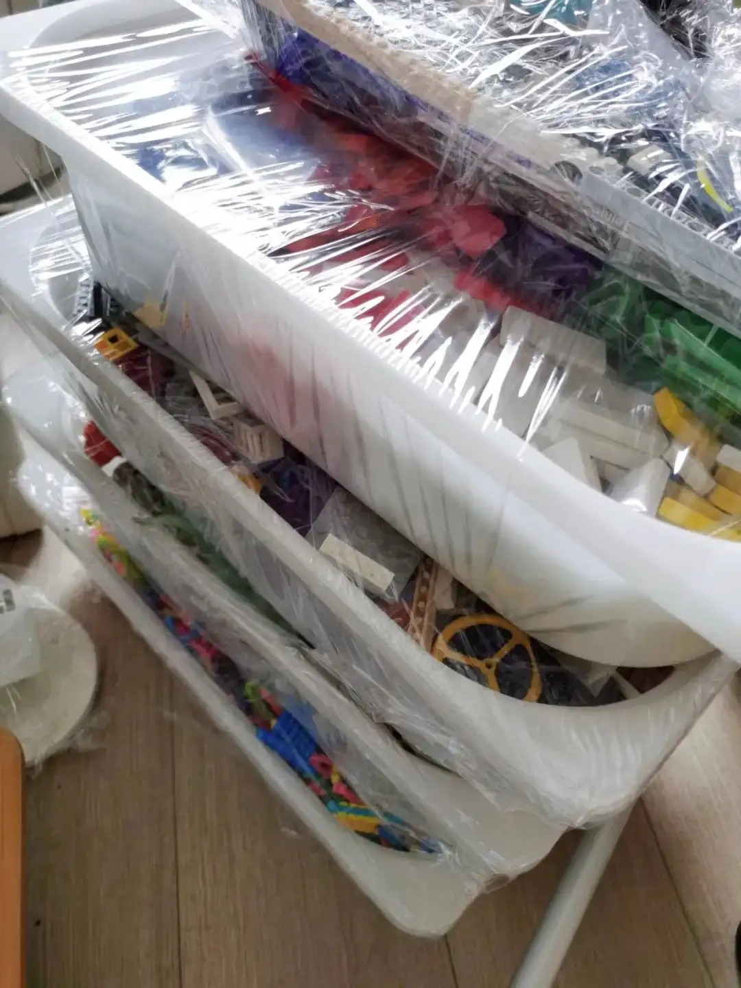 前阵子搬家了,换房子、打包、新家整理,样样都是琐碎的事儿。搬家前还接了个客户的搬家整理,那段时间真给我累够呛。搬家这个事吧,累,也麻烦,但理清思路之后吧,就还。。。还是累且麻烦还琐碎,哈哈哈。这篇先来说说打包这个事。平时住在家里不觉得,一旦搬家的时候,把所有东西都掏出来,那可真是多呀,不仅多,还琐碎,还有好多易碎物品。我当时就觉得,别看我家就那么几组柜子:三组衣柜,一组走廊储物柜,一组书柜,一组厨房柜,一组餐边柜,再加上玩具收纳柜和抽屉。可真是太能装了啊,不禁感慨下我当时设计得真好啊。平时东西都收在柜子里,家里还挺空的,是真没想到这么能装。打包这个事,最重要的是要准备好充足的打包工具。确保所有东西都能安稳的装进去,然后装车拉走就可以了。如果这些东西能按照类别打包的话,那就更好了,这样新家整理的时候会更省力些。比如小茶杯、小玻璃瓶、小勺子等,体积小,缠几圈就很结实了,操作也很方便。比如油盐酱醋等调料瓶的口子,用缠绕膜牢牢缠住,搬运过程中不担心会洒出来。这个是我用得最多的,有些需要简单固定的,像抽屉这种直接整组搬运的,就用缠绕膜缠几圈,防止抽屉滑出来。打包碗盘时也用到了它,我没有把每只碗每只盘子都单独打包,而是把几只盘子摞在一起,用气泡袋包裹起来,再用缠绕膜缠几圈固定。比胶带好用,不会留下胶渍,比绳子方便,不需要打结,缠绕膜自带一点点粘性,只需多缠几圈就可以了。也不需要时刻准备剪刀剪断,撕扯一下就能断开了。本来想用纸箱的,后来突发灵感,用了缠绕膜,35cm的宽度打包书刚刚好。我的书柜是宽度40cm的格子,每个格子里放的是同一类的书,我就用缠绕膜把每个格子里的书单独打包。这样书的数量不多,打包的时候不会太困难,搬运的时候也轻松。搬到新家之后,就直接原样放回书柜,真的是太方便了。但话说回来,把所有的书都打包好,也还是费了蛮多力气的,可以说是整个打包工作里最累的活了。我还买了一卷绳子,想着把每打书打个十字结,一个是会更结实,另一个是好拎,但最后也没用上,只用了缠绕膜也没有散。另外如果用箱子装书的话,切记用小号的箱子,不然真的太重了。我有好多东西都是放在收纳盒里分类收好的,就没有再把它们拆出来,而是整个收纳盒用缠绕膜缠起来,连盒一起打包走。比如舒法特的玩具盒、厨房里的各种分类收纳盒等等。这样一个是减少打包的工作,另外新家收纳的时候也更容易,整盒搬走,整盒收纳。床垫、软包床头床体,都用缠绕膜缠了起来,简单保护一下。椅子当时没想起来缠一下,结果后背就给我磨花了,心疼啊。像电饭煲、锅这些,也用缠绕膜缠起来,这样摞在一起也不怕会磨损。气泡袋的保护性更好,主要用来打包那些易碎的玻璃制品或者比较贵的东西。我选的是宽度30cm的,能适配大部分物品。