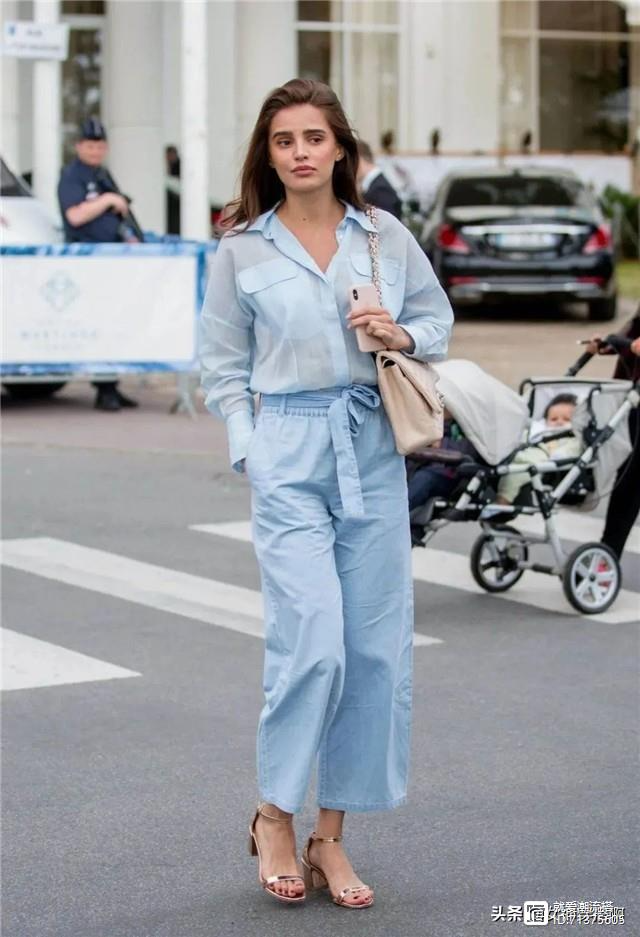 所谓的上紧下松也就是选择比较修身的上衣,结合一些宽松的裤子。例如现在非常流行的阔腿裤,就能很好的遮住身上的赘肉。这类阔腿裤可以塑造出纤细的身材,结合收腰的上衣也能够诠释出高挑的身材。但是修身上衣也不要过紧,否则的话就会显得太过于沉闷,而且显得太过于俗气。