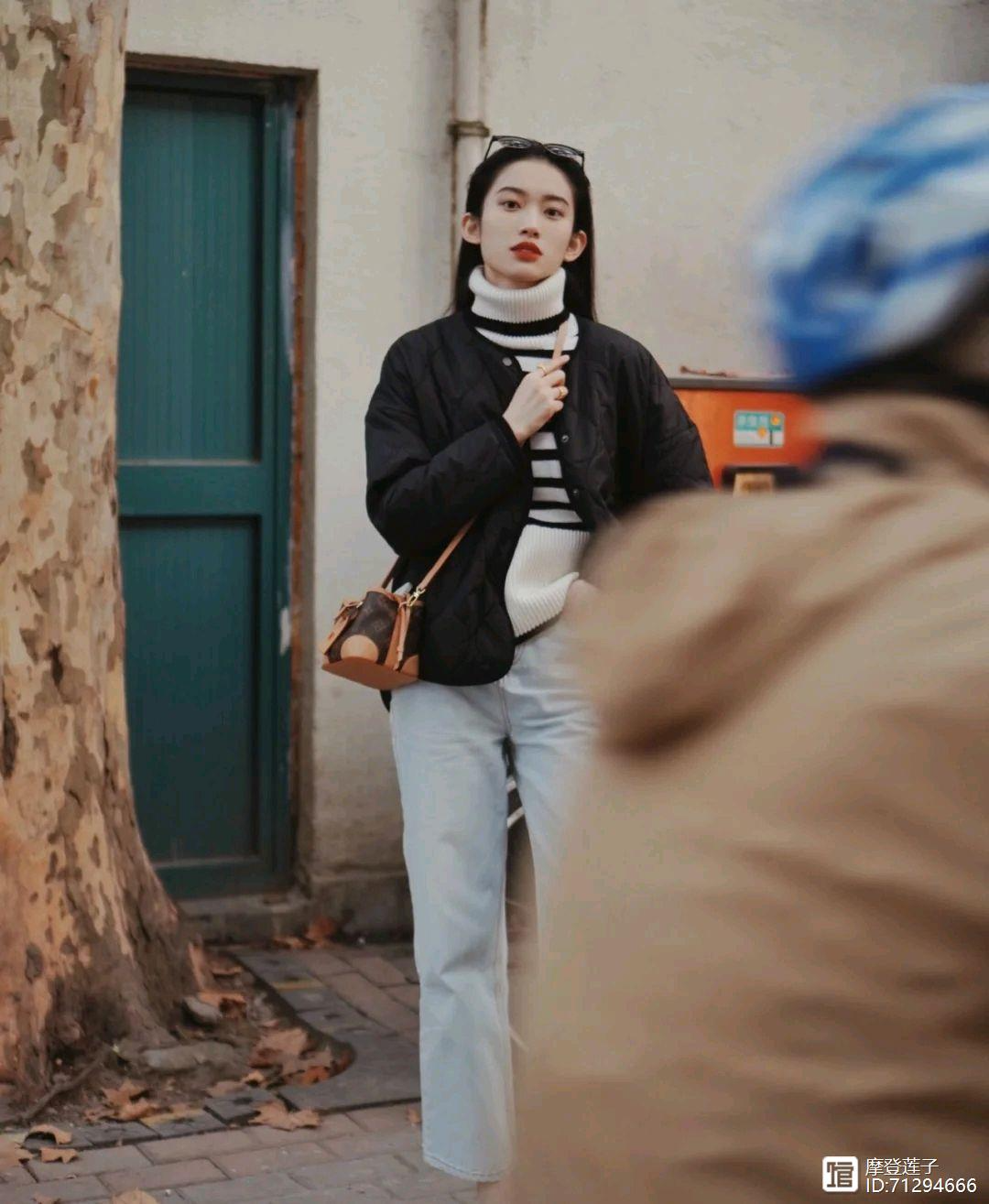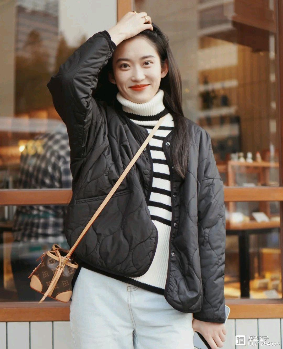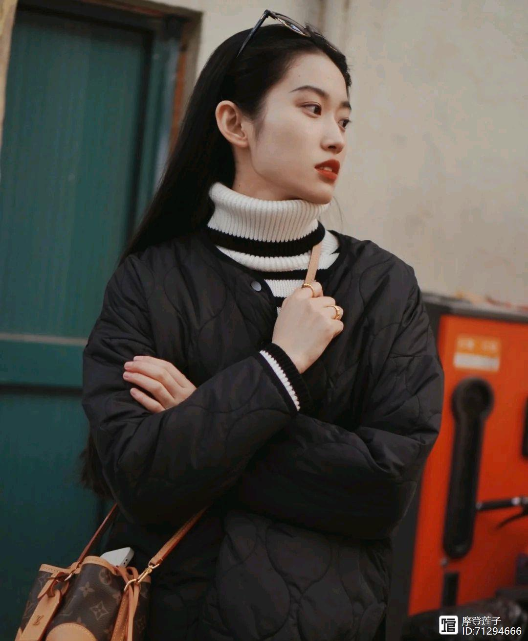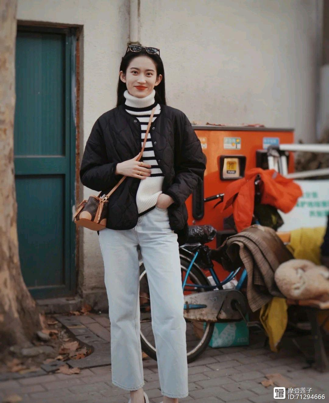 日常穿搭一般情况下都是很基础的服装款式,想要穿出高级感就很考验个人的穿搭能力,如果不会搭配的话确实没有什么亮点,可以像这位时尚博主一样,选择一件简简单单的黑色羽绒服搭配黑白相间的高领毛衣,再选择浅色牛仔直筒裤来搭配,穿出来的视觉效果简简单单,却做到了时尚与保暖并存。