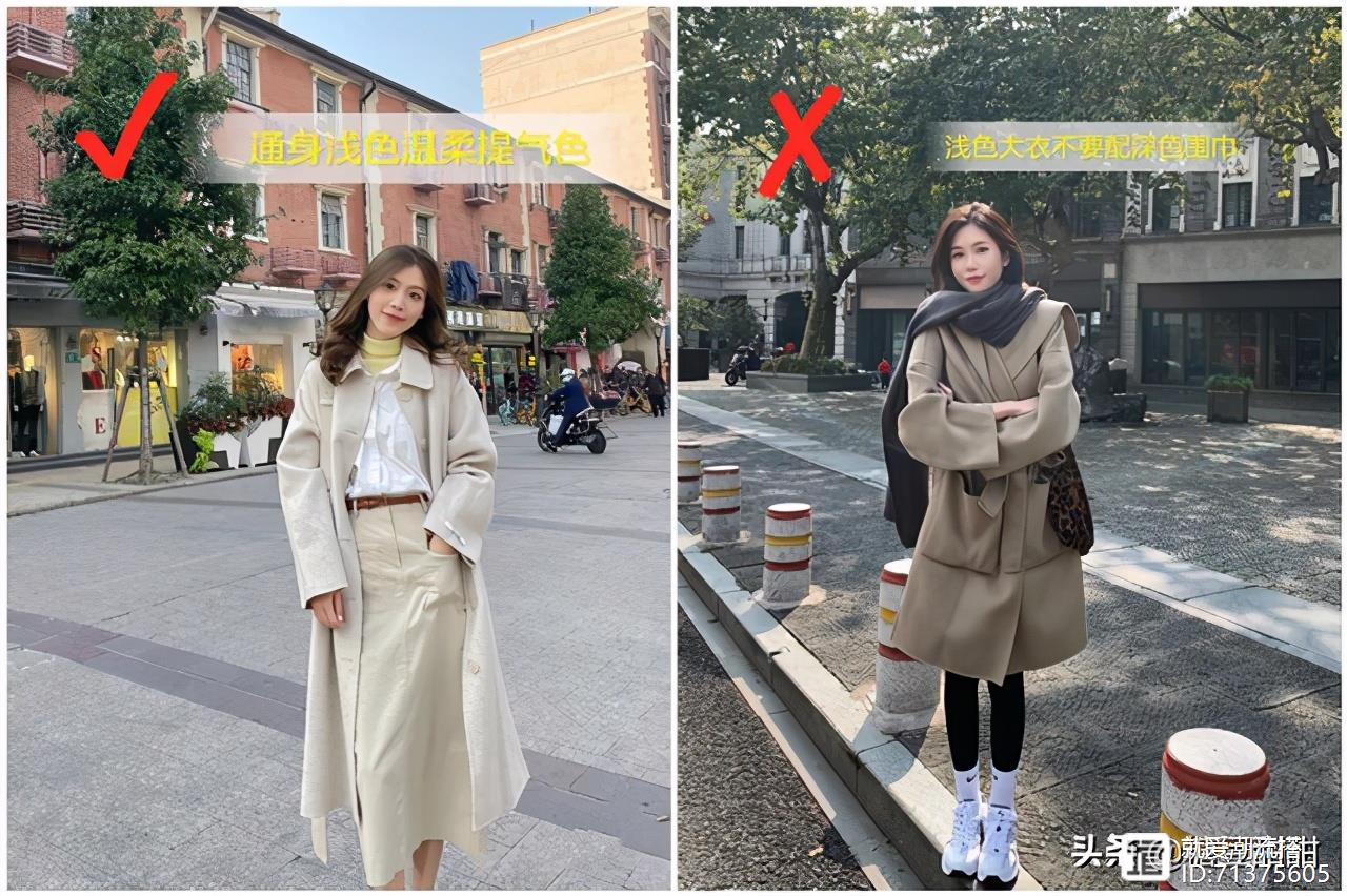 举个最简单的例子,秋冬季节很多仙女走温柔风,喜欢穿杏色、奶油白这样的浅色大衣。确实,这种颜色的大衣很提气色也很显白。但是好巧不巧,有的仙女喜欢搭配一条深色甚至黑色的围巾,一旦搭配上这样的围巾,整体的画风就会突变,有一种诡异的感觉,出现这样问题的基本原因,就是没有掌握基本的色彩原理所导致的。